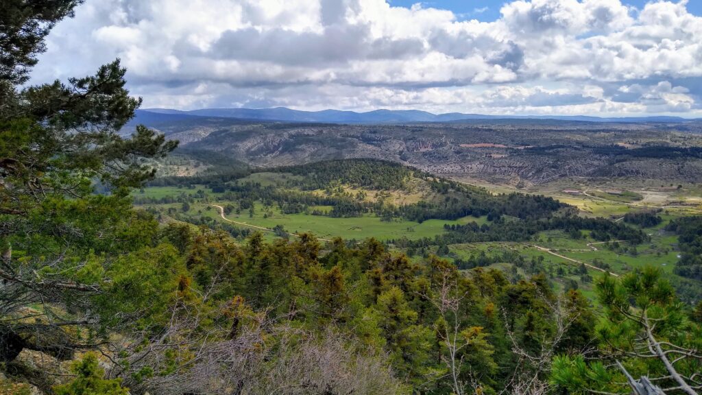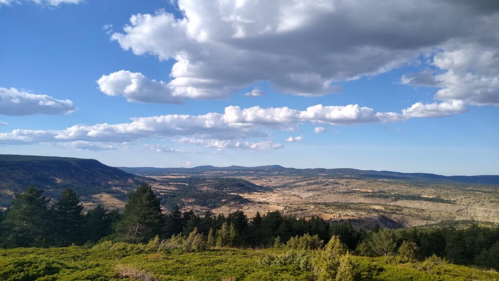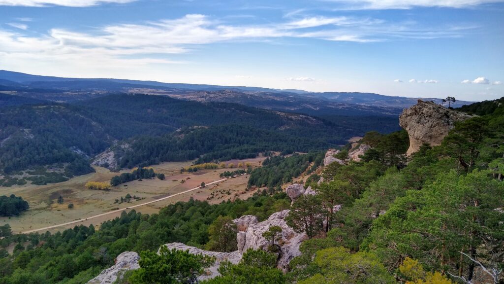 Los bosques de pino albar, sabinas centenarias y praderas de montaña envuelven al visitante en un paisaje cambiante con cada estación: verdes intensos en primavera, frescos veranos ideales para caminar, un otoño de colores mágicos y un invierno de nieve y silencio. Muy cerca se encuentra la Muela de San Juan, uno de los parajes más conocidos, perfecto para disfrutar de senderismo, rutas en bicicleta o caballo, o simplemente para contemplar la inmensidad de la sierra.